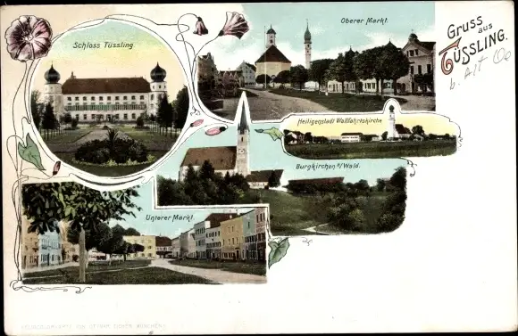 Ak Tüßling Oberbayern, Schloss Tüssling, Oberer u. Unterer Markt, Burgkirchen am Wald, Heiligenstatt