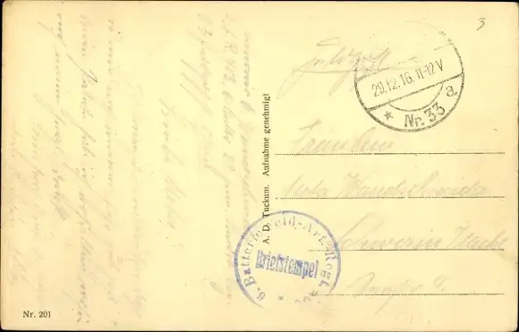 Zustand, siehe Scan, gelaufen, 1916 - ca 14 cm X 9 cm