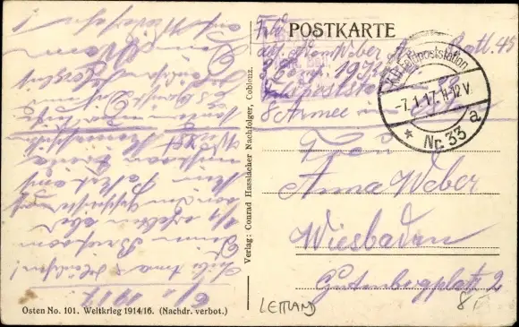 Zustand, siehe Scan, gelaufen, 1917 - ca 14 cm X 9 cm