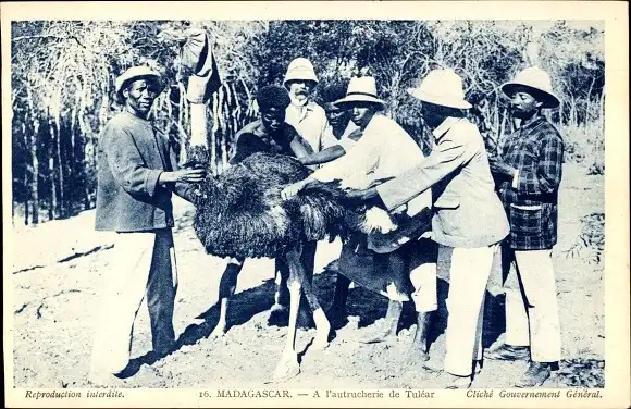 Ak Tulear Madagascar, Rupfen von Straußenfedern