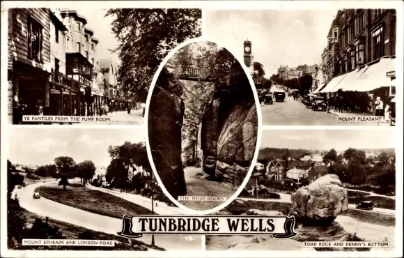 Ak Tunbridge Wells Kent England, Pantiles from the Pump Room, Mount Pleasant, Toad Rock