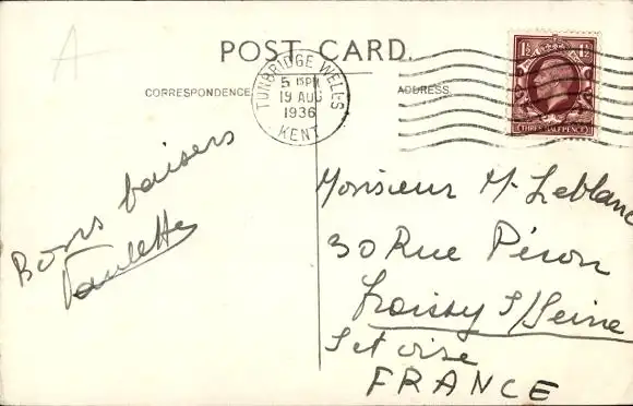 Zustand, siehe Scan, gelaufen, 1936 - ca 5 cm X 3 cm