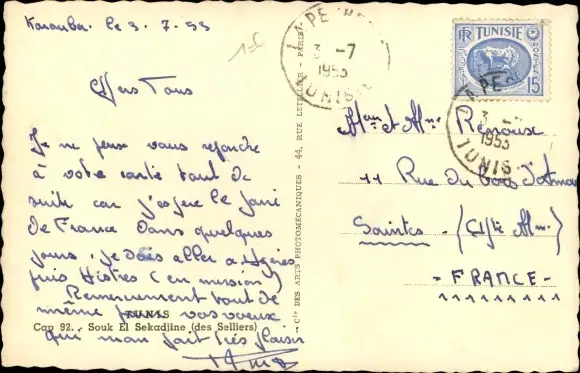 Zustand, siehe Scan, gelaufen, 1953 - ca 14 cm X 9 cm