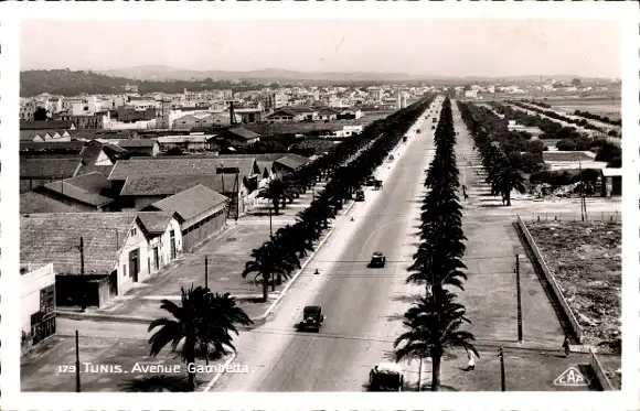 Ak Tunis Tunesien, Avenue Gambetta, Straßenpartie, Stadtblick