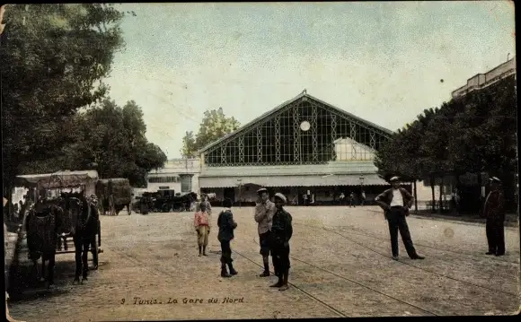 Ak Tunis Tunesien, La Gare du Nord, Bahnhof, Straßenseite