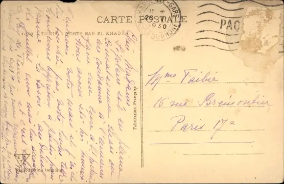 Zustand, siehe Scan, gelaufen, 1930 - ca 14 cm X 9 cm