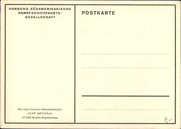 Ansichtskarte,Postkarte,HSDG,Hamburg, Südamerikanische, Dampfschifffahrts, Gesellschaft