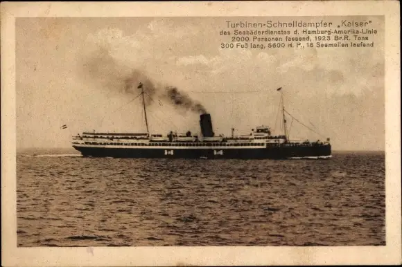 Ak Turbinen Schnelldampfer Kaiser, HAPAG Seebäderdienst