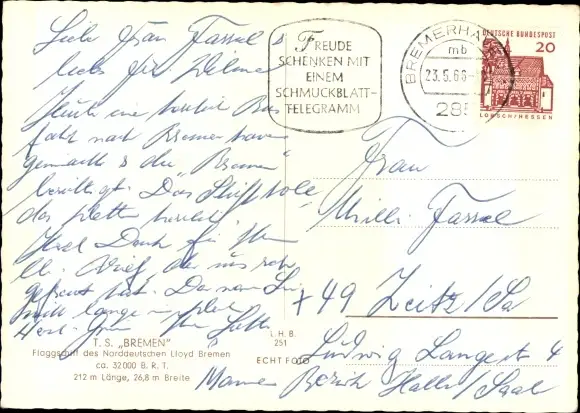 Zustand, siehe Scan, gelaufen, 1966 - ca 15 cm X 11 cm