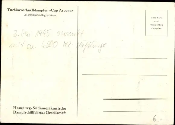 Ak Turbinenschnelldampfer Cap Arcona, HSDG