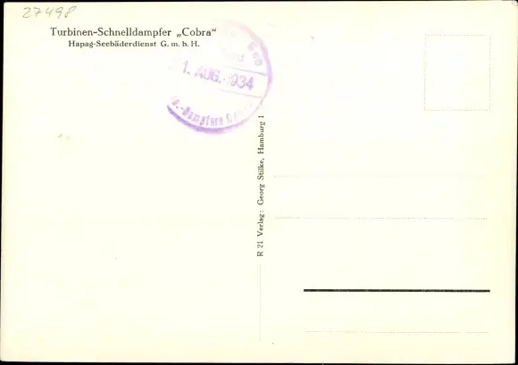 Ak Turbinenschnelldampfer Cobra, HAPAG Seebäderdienst