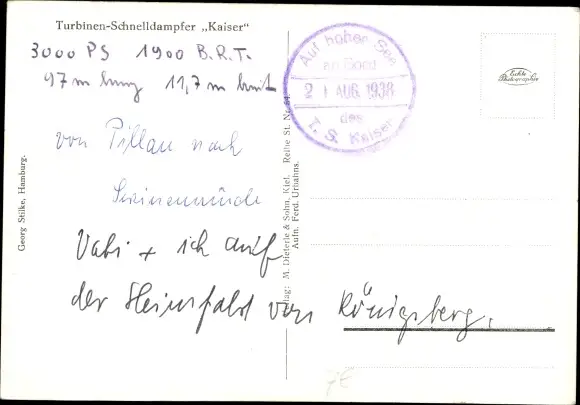 Ak Turbinenschnelldampfer Kaiser, HAPAG Seebäderdienst