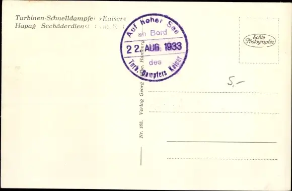 Ak Turbinenschnelldampfer Kaiser, HAPAG Seebäderdienst