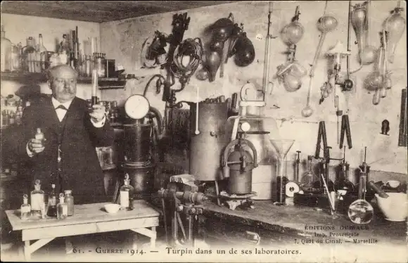 Ak Turpin in einem seiner Laboratorien, Krieg 1914
