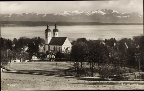 Ak Tutzing am Starnberger See Oberbayern, Teilansicht, Kirche