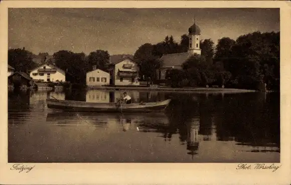 Ak Tutzing in Oberbayern, Stadtansicht, Starnberger See, Ruderer, Glockenturm