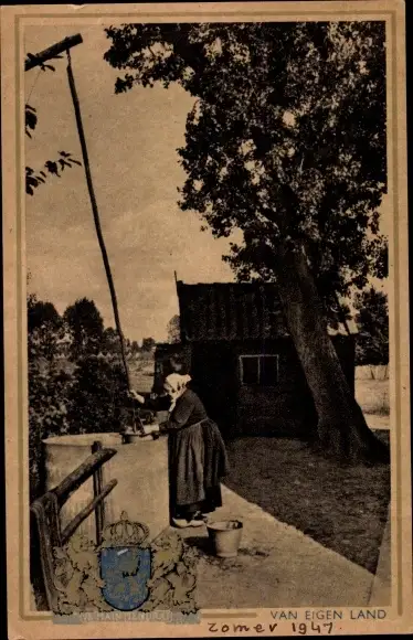 Ak Twente Overijssel Niederlande, van eigen Land, Frau am Brunnen