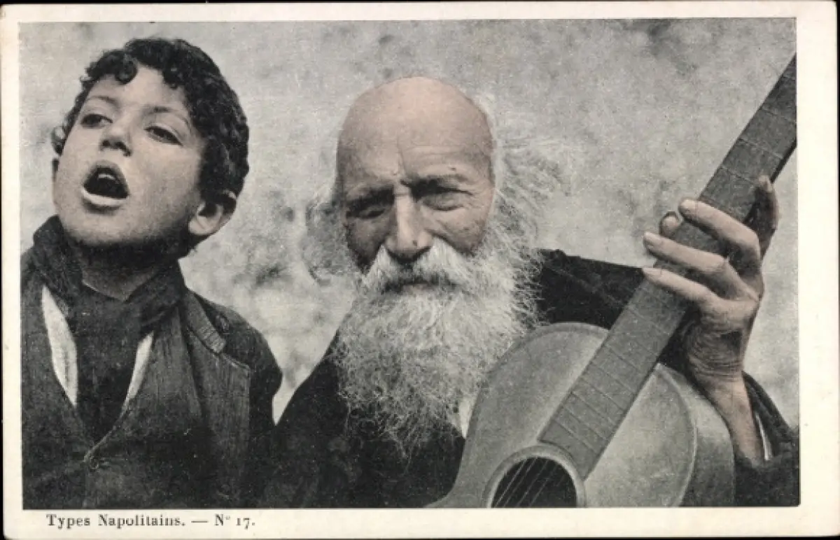 Ak Types Napolitains, alter Mann mit Gitarre, Junge