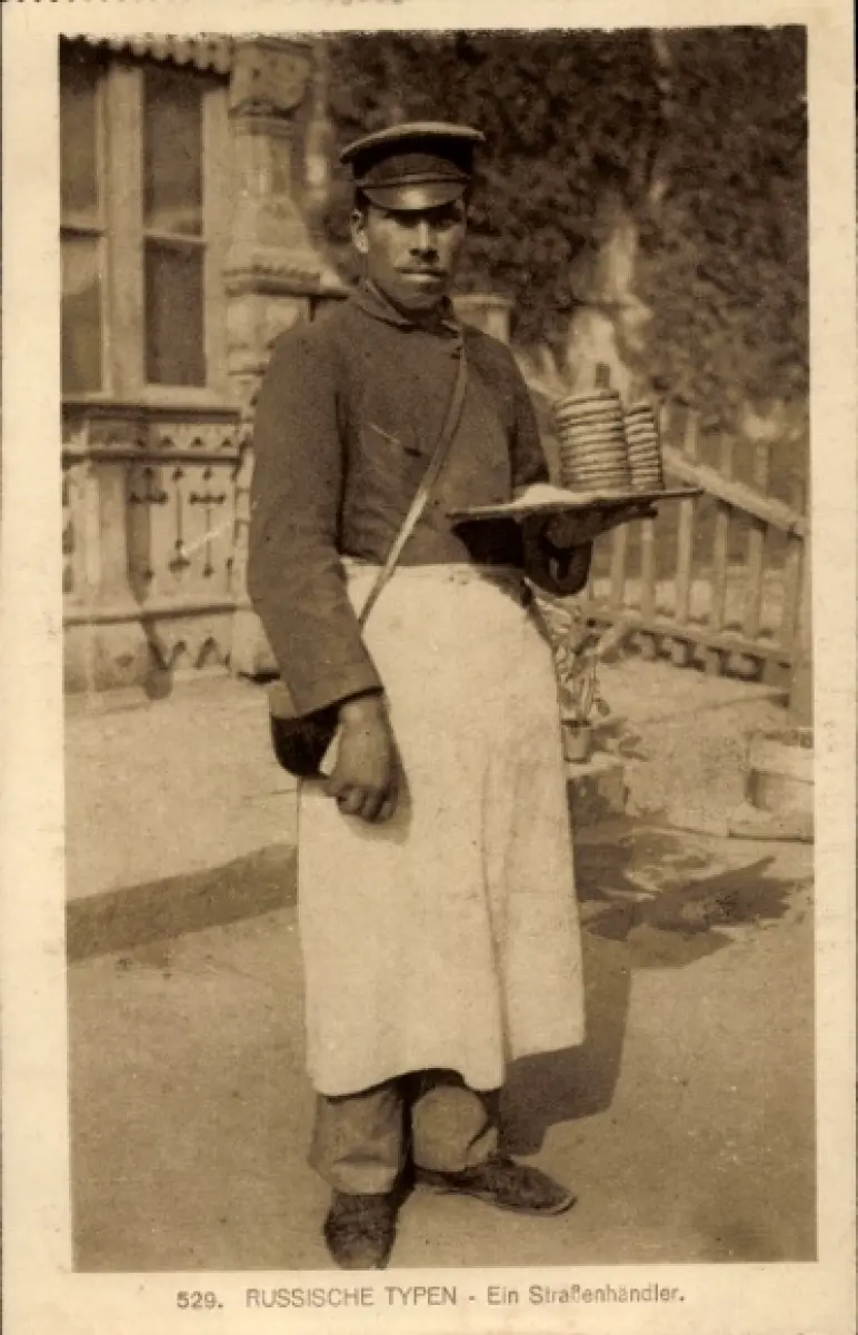 Ak Types Russes, un marchand de blinis, russischer Bäcker in Tracht