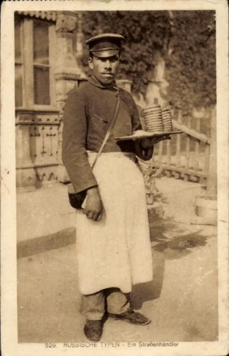Ak Types Russes, un marchand de blinis, russischer Bäcker in Tracht