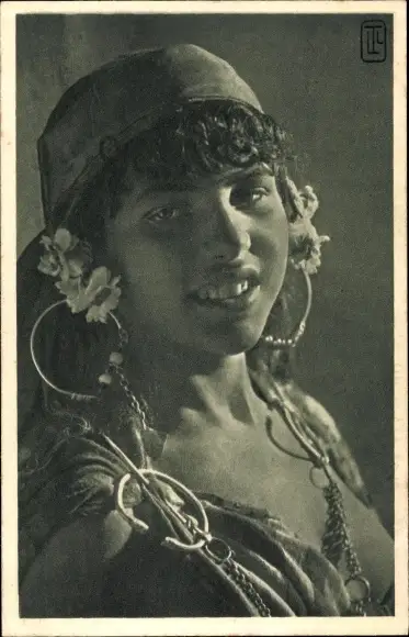 Ak Types d'Orient, Jeune fille bedouines, Maghreb, Schmuck, Ohrringe