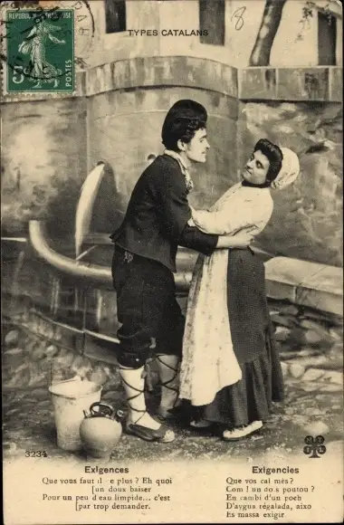 Ak Types de Catalans, Mann versucht Frau zu küssen