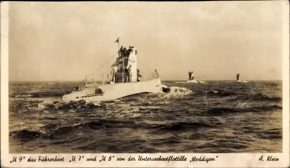 Ak U 9 das Führerboot, U 7 und U 8 von der Unterseebootsflottille Weddigen
