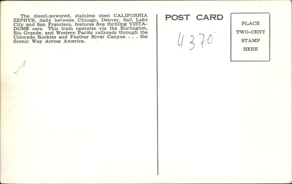 Ak US Amerikanische Eisenbahn, California Zephyr