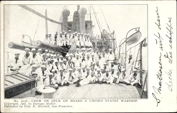 Ak US Amerikanisches Kriegsschiff, Besatzung an Deck, Seeleute