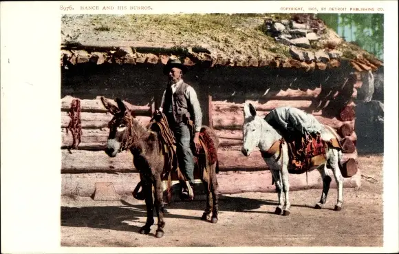 Ak USA, Reiter auf einem Esel, Packesel