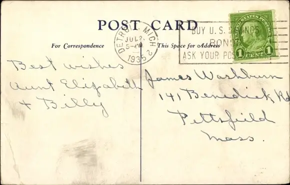 Zustand, siehe Scan, gelaufen, 1935- Photochromie Detroit Publishing Company 703030 - ca 14 cm X 9 cm