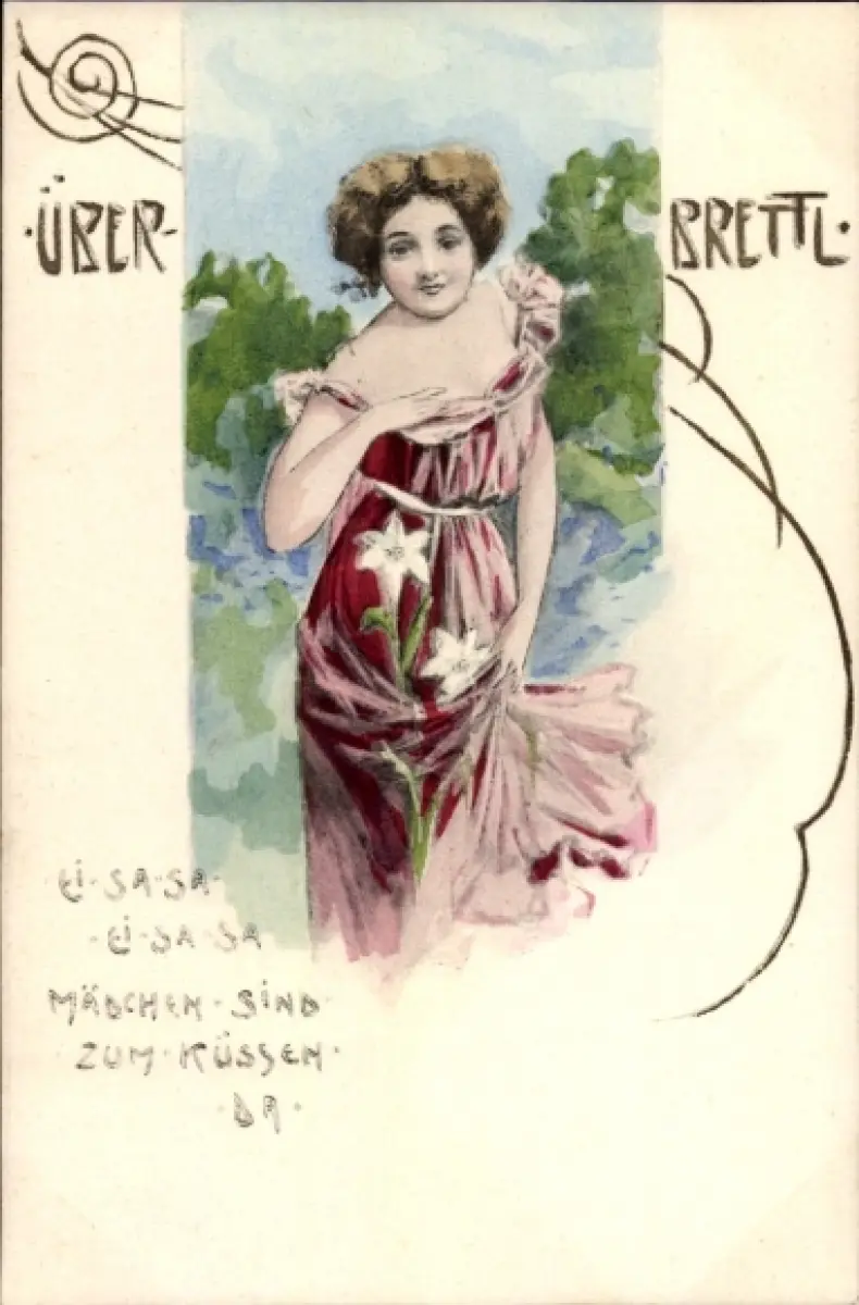 Ak Überbrettl, Junge Frau, Porträt, Blumen