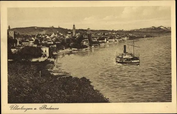 Ak Überlingen am Bodensee, Teilansicht mit Dampfer