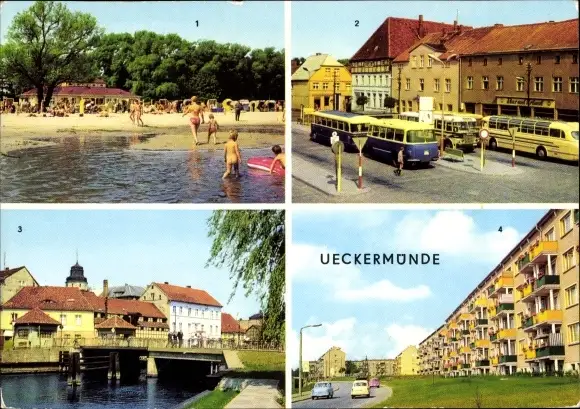 Ak Ueckermünde in Mecklenburg Vorpommern, am Haffbad, Karl Marx Platz, Hafen, Neubauten
