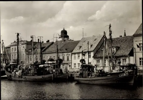 Ak Ueckermünde in Vorpommern, Am Hafen, Fischerboote