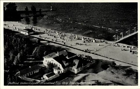 Ak Ueckermünde in Vorpommern, Haffbad, Fliegeraufnahme