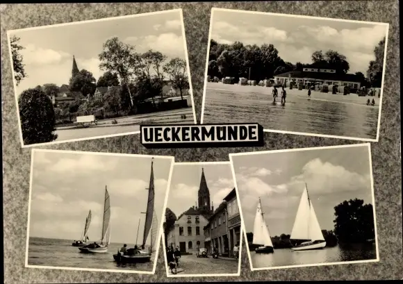 Ak Ueckermünde in Vorpommern, Teilansicht, Strand, Segelboote