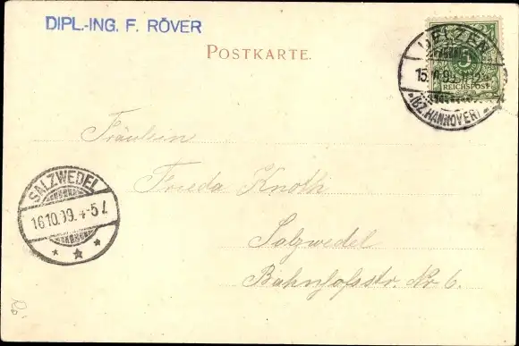 Zustand, siehe Scan, gelaufen, 1899 - ca 9 cm X 14 cm