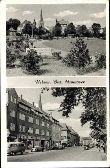 Ak Uelzen in Niedersachsen, Teilansicht, Straßenpartie, Opel Geschäftshaus