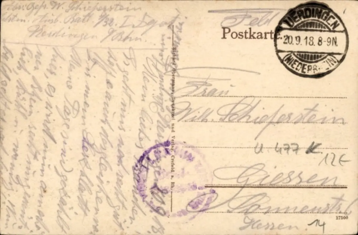 Zustand, siehe Scan, gelaufen, 1918 - ca 14 cm X 9 cm