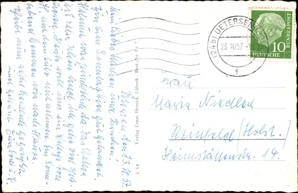 Zustand, siehe Scan, gelaufen, 1957 - ca 14 cm X 9 cm