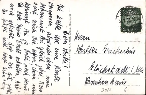 Zustand, siehe Scan, gelaufen, 1938 - ca 14 cm X 9 cm