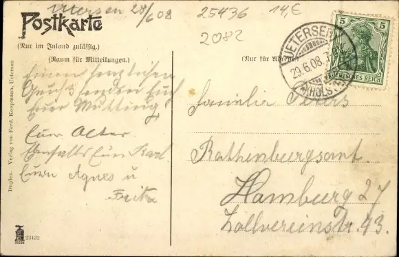 Zustand, siehe Scan, gelaufen, 1908 - ca 14 cm X 9 cm