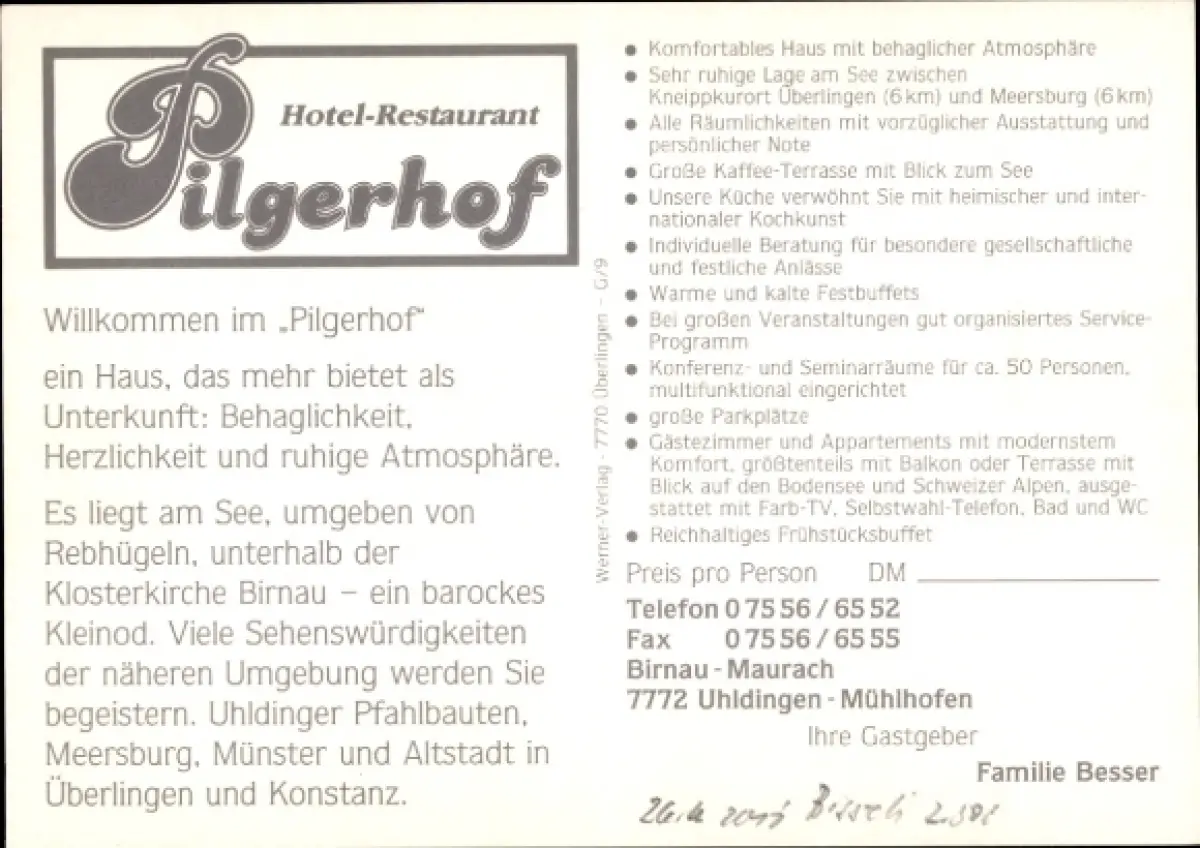 Ak Uhldingen Mühlhofen am Bodensee, Hotel Restaurant Pilgerhof