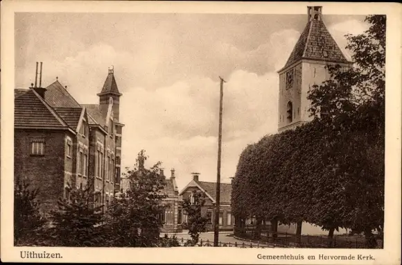 Ak Uithuizen Groningen Niederlande, Rathaus, Herv. Kirche