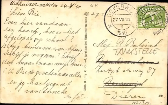 Zustand, siehe Scan, gelaufen, 1940 - ca 14 cm X 9 cm
