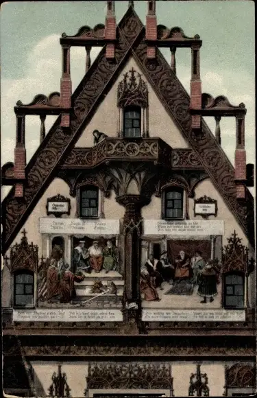 Ak Ulm an der Donau, Detailansicht des Rathauses, Gemälde an der Fassade