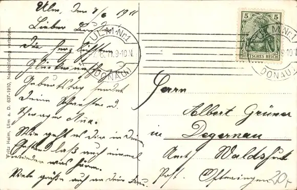 Zustand siehe Scan, gelaufen, 1911 - ca 14 cm X 9 cm