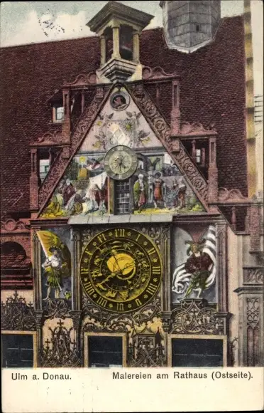 Ak Ulm an der Donau, Malereien am Rathaus, Ostseite