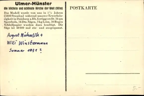 Ak Ulm an der Donau, Modell vom Münster, Erbauer